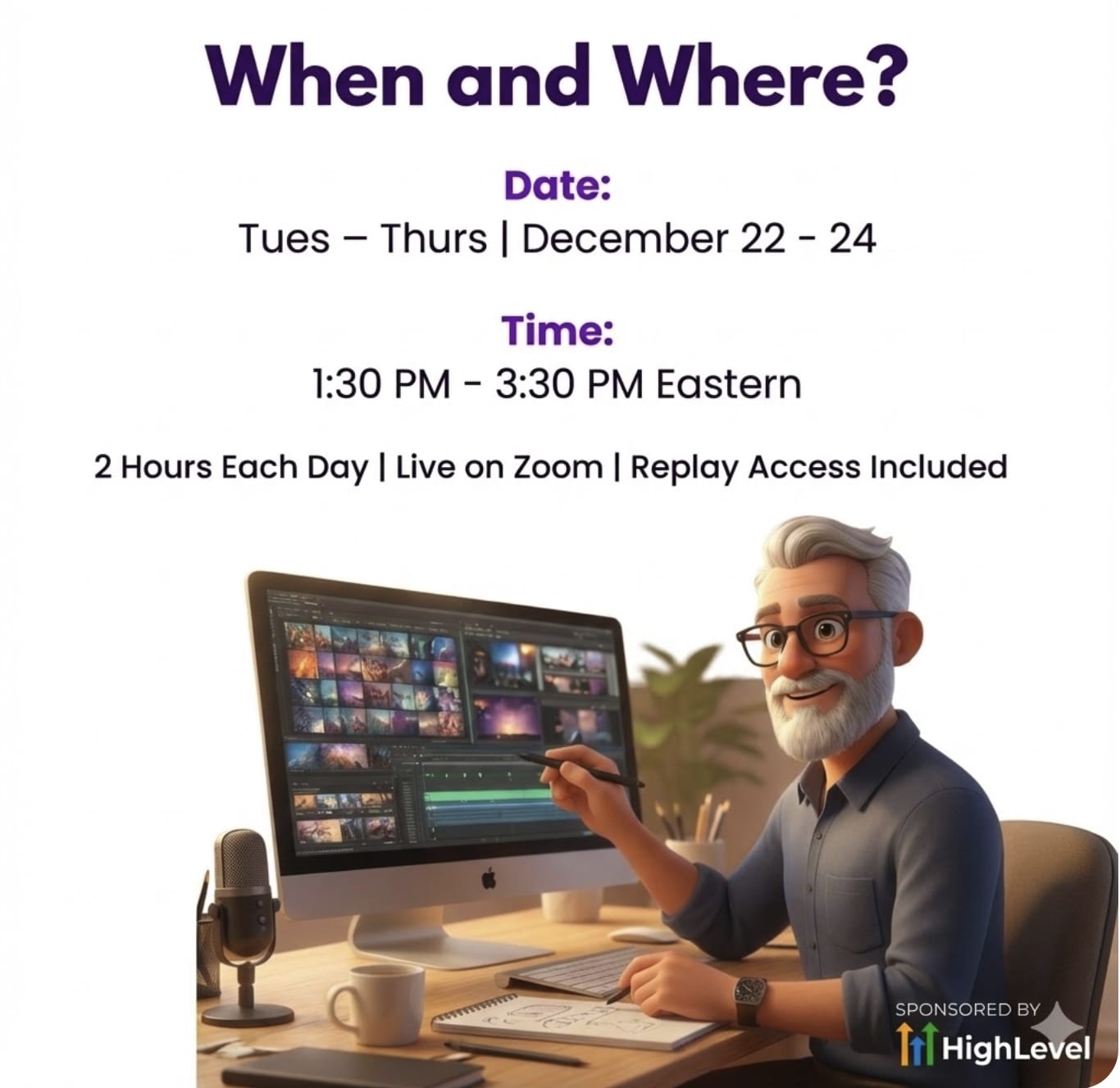 This is a LIVE workshop. You'll build your first videos. On camera. During the challenge. By the end of Day 3, you have what you need to have created